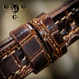 این بند ساعت از چهار لایه چرم طبیعی ورنی خشتی قهوه ای ساخته شده که در هاردباکس اختصاصی برند گرگینه چرم (اسلاید آخر) تقدیم می گردد و در آستر این کار از چرم ضدحساسیت استفاده شده است. این کار دارای پرداخت لبه حرفه ای می باشد و بدون قفل ارائه می گردد. برای اینکه بند ساعت کاملا مطابق با ساعت شما طراحی شود لطفا سایز قسمت پین متصل به بدنه و قفل را با توجه به "راهنمای اندازه گیری بند ساعت" در بخش توضیحات وارد نمایید. تمامی محصولات مجموعه گرگینه چرم قابلیت شخصی سازی دارند و شما می توانید از طریق "تماس با ما" تمامی جزئیات محصول اعم از رنگ چرم، سایز، مدل، دوخت روی کار و ... را تغییر دهید. همچنین محصولات ما دارای ضمانت سلامت و کیفیت می باشند و درصورت داشتن کوچکترین ایرادی مرجوعی شما "بالبخند" پس گرفته میشود.