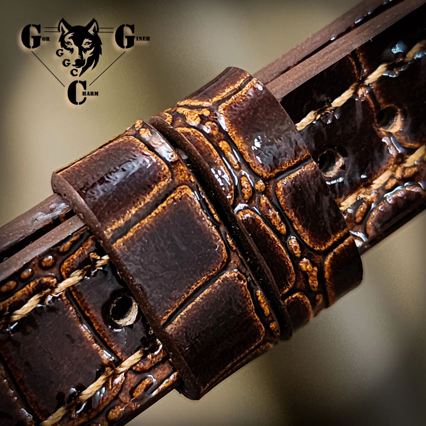 بند ساعت چهار لایه چرم طبیعی ورنی خشتی