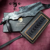 این ست لوکس شامل کیف مدارک، و دستبند کاملا دست دوز از جنس چرم ناپا گاوی و ساق شترمرغ به رنگ مشکی مات می باشد و در هاردباکس اختصاصی برند گرگینه چرم تقدیم می گردد. دارای پرداخت لبه ی حرفه ای است. این کیف مناسب برای مدارک شما از جمله مدارک ماشین، شناسنامه، پاسپورت، ۷ جای کارت اعتباری، گوشی و یک جیب زیب دار نیز واسه اشیای ریز از جمله: فلش، سیمکارت و تعبیه شده. این ست در هاردباکس اختصاصی مجموعه با لوگوی طلاکوب شده گرگینه چرم ارائه میگردد. تمامی محصولات مجموعه گرگینه چرم قابلیت شخصی سازی دارند و شما می توانید از طریق "تماس با ما" تمامی جزئیات محصول اعم از رنگ چرم، سایز، مدل، دوخت روی کار و ... را تغییر دهید. همچنین محصولات ما دارای ضمانت سلامت و کیفیت می باشند و درصورت داشتن کوچکترین ایرادی مرجوعی شما "بالبخند" پس گرفته میشود.