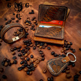 ست لوکس جاکارتی، دستبند و جاکلیدی تمام چرم طبیعی از جنس چرم گاو و ساق شترمرغ اعلاء به رنگ: عسلی و قهوه ای است و دارای پرداخت لبه ی حرفه ای می باشد و بصورت دستدوز اجرا گردیده است. کیف جاکارتی یک پکیج کامل برای تمامی مدارک شما می باشد و دارای ۷ جای کارت مجزای تمام چرم است. و این ست در هاردباکس اختصاصی مجموعه با طلاکوب برند گرگینه چرم ارائه می گردد. تمامی محصولات مجموعه گرگینه چرم قابلیت شخصی سازی دارند و شما می توانید از طریق "تماس با ما" تمامی جزئیات محصول اعم از رنگ چرم، سایز، مدل، دوخت روی کار و ... را تغییر دهید. همچنین محصولات ما دارای ضمانت سلامت و کیفیت می باشند و درصورت داشتن کوچکترین ایرادی مرجوعی شما "بالبخند" پس گرفته میشود.