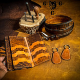 این ست شامل کیف مدارک سه لِت و کمربند تمام چرم تماما دست دوز از جنس چرم شتر و بوفالو اعلاء به رنگ: عسلی و قهوه ای است و کار دارای پرداخت لبه ی حرفه ای است. کمربند از سه لایه چرم طبیعی تشکیل شده و دو رو میباشد و با کمک یک پیچ میتوان از هر دو سمت آن استفاده کرد. کیف مدارک یک پکیج کامل برای تمامی مدارک شما می باشد. دارای ۱۷ جای کارت مجزا، یک جیب زیپ دار برای نگهداری از وسایلی از قبیل سکه، فلش و ۳ محفظه ی مجزا برای نگهداری از اسکناس، موبایل و.... است. این ست در هاردباکس اختصاصی مجموعه گرگینه چرم با طلاکوب برند مجموعه ارائه می گردد. تمامی محصولات مجموعه گرگینه چرم قابلیت شخصی سازی دارند و شما می توانید از طریق "تماس با ما" تمامی جزئیات محصول اعم از رنگ چرم، سایز، مدل، دوخت روی کار و ... را تغییر دهید. همچنین محصولات ما دارای ضمانت سلامت و کیفیت می باشند و درصورت داشتن کوچکترین ایرادی مرجوعی شما "بالبخند" پس گرفته میشود.