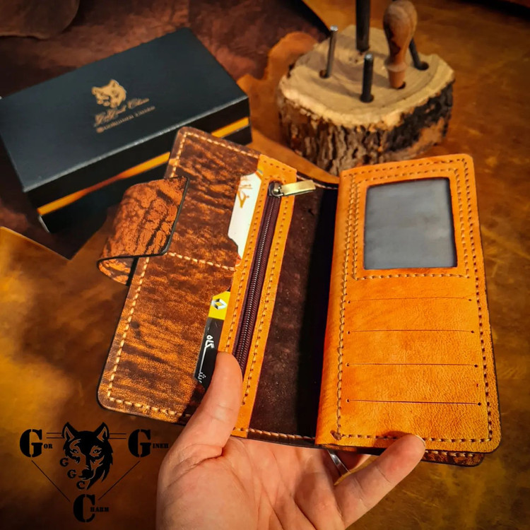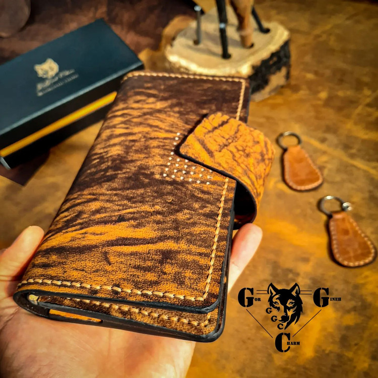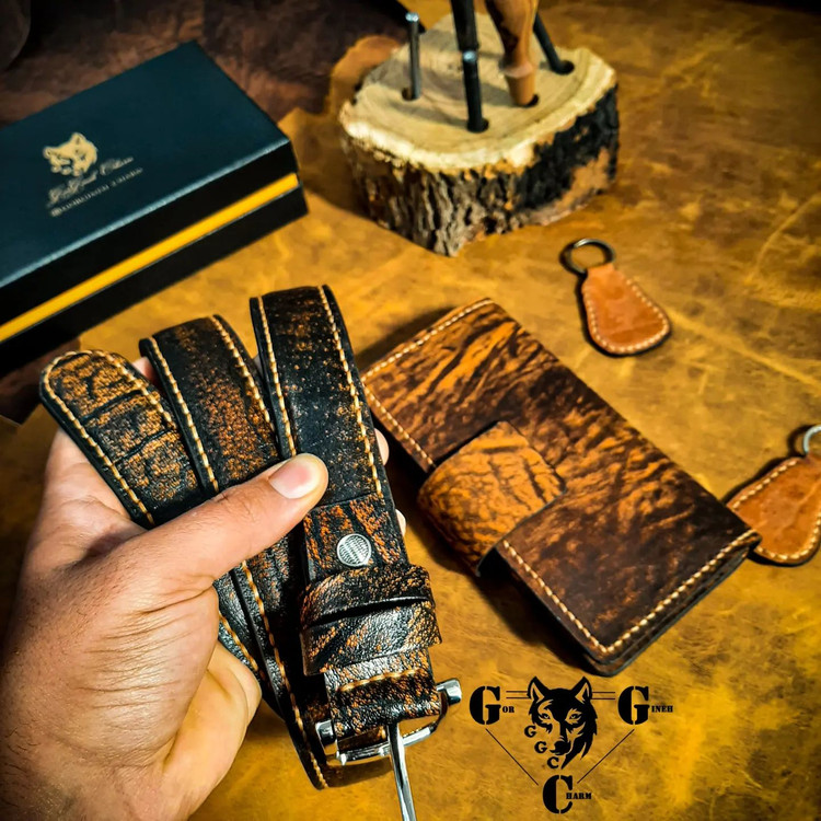 این ست شامل کیف مدارک سه لِت و کمربند تمام چرم تماما دست دوز از جنس چرم شتر و بوفالو اعلاء به رنگ: عسلی و قهوه ای است و کار دارای پرداخت لبه ی حرفه ای است. کمربند از سه لایه چرم طبیعی تشکیل شده و دو رو میباشد و با کمک یک پیچ میتوان از هر دو سمت آن استفاده کرد. کیف مدارک یک پکیج کامل برای تمامی مدارک شما می باشد. دارای ۱۷ جای کارت مجزا، یک جیب زیپ دار برای نگهداری از وسایلی از قبیل سکه، فلش و ۳ محفظه ی مجزا برای نگهداری از اسکناس، موبایل و.... است. این ست در هاردباکس اختصاصی مجموعه گرگینه چرم با طلاکوب برند مجموعه ارائه می گردد. تمامی محصولات مجموعه گرگینه چرم قابلیت شخصی سازی دارند و شما می توانید از طریق "تماس با ما" تمامی جزئیات محصول اعم از رنگ چرم، سایز، مدل، دوخت روی کار و ... را تغییر دهید. همچنین محصولات ما دارای ضمانت سلامت و کیفیت می باشند و درصورت داشتن کوچکترین ایرادی مرجوعی شما "بالبخند" پس گرفته میشود.