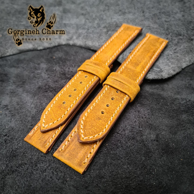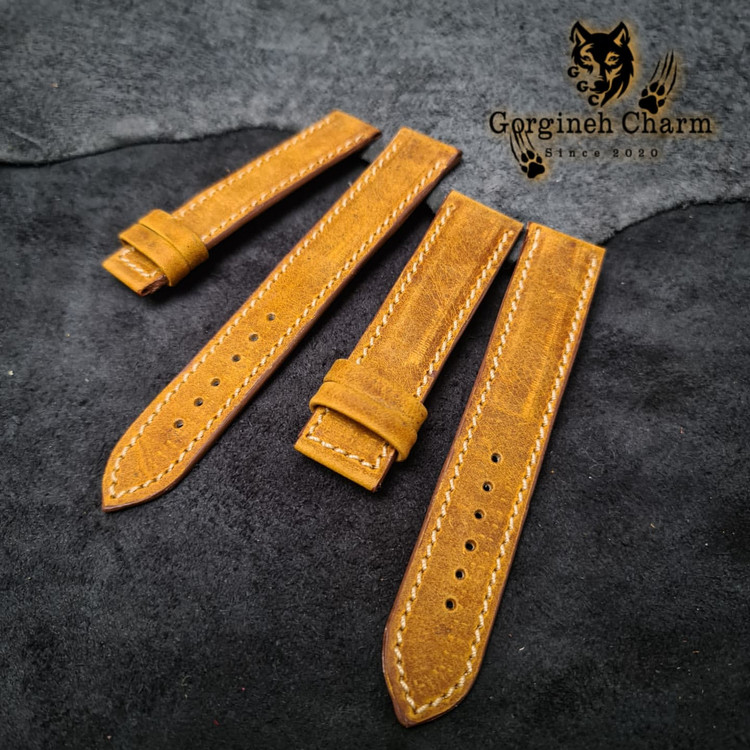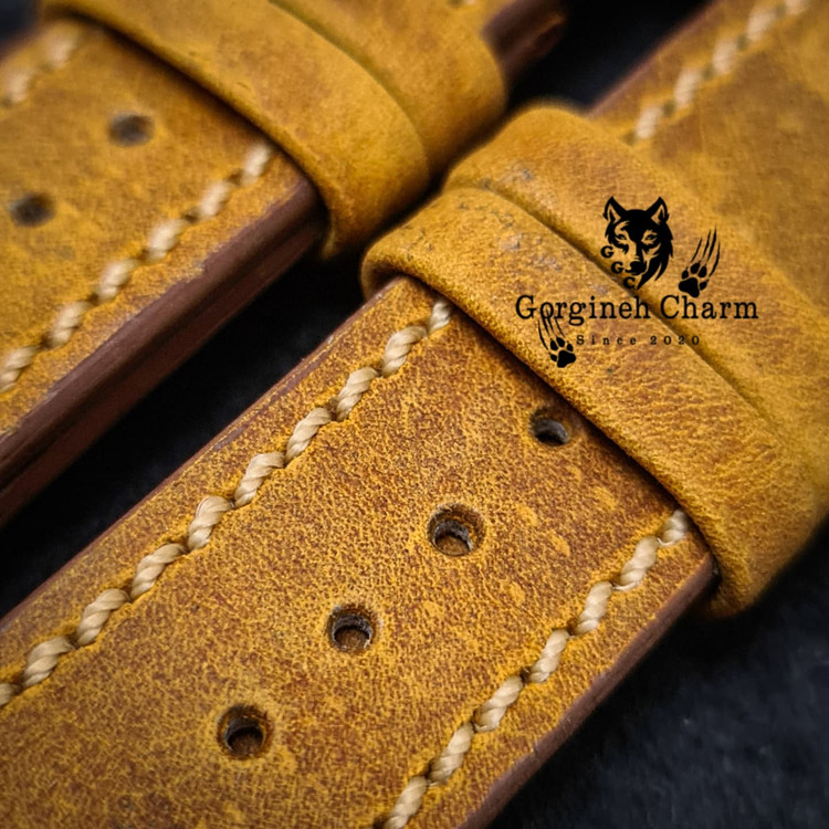 این بند ساعت از چهار لایه چرم طبیعی هورس گاوی به رنگ خردلی ساخته شده که در هاردباکس اختصاصی برند گرگینه چرم (اسلاید آخر) تقدیم می گردد و در آستر این کار از چرم ضدحساسیت استفاده شده است. این کار دارای پرداخت لبه حرفه ای می باشد و بدون قفل ارائه می گردد. برای اینکه بند ساعت کاملا مطابق با ساعت شما طراحی شود لطفا سایز قسمت پین متصل به بدنه و قفل را با توجه به "راهنمای اندازه گیری بند ساعت" در بخش توضیحات وارد نمایید. تمامی محصولات مجموعه گرگینه چرم قابلیت شخصی سازی دارند و شما می توانید از طریق "تماس با ما" تمامی جزئیات محصول اعم از رنگ چرم، سایز، مدل، دوخت روی کار و ... را تغییر دهید. همچنین محصولات ما دارای ضمانت سلامت و کیفیت می باشند و درصورت داشتن کوچکترین ایرادی مرجوعی شما "بالبخند" پس گرفته میشود.