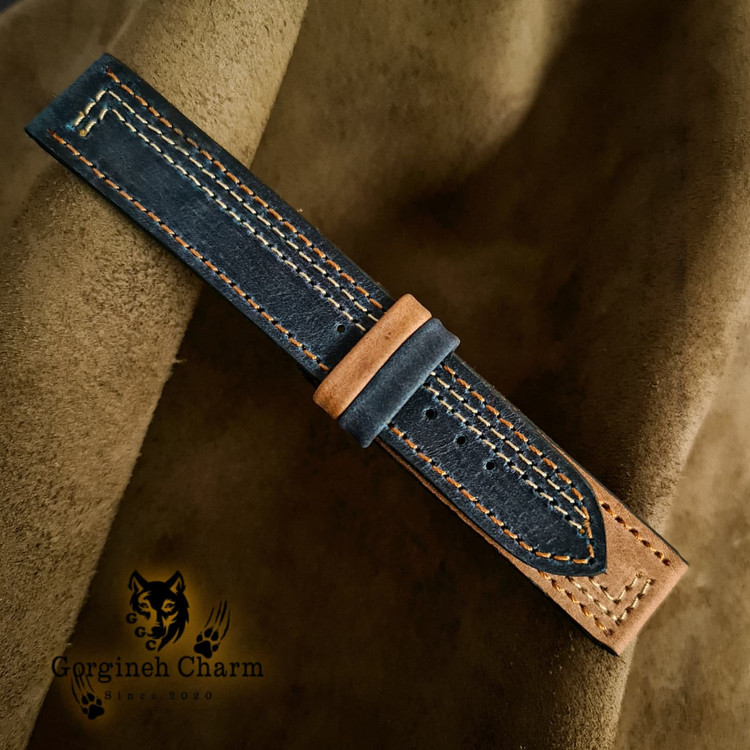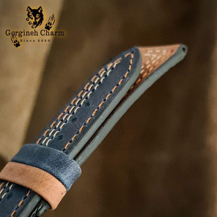 این بند ساعت از چهار لایه چرم طبیعی هورس گاوی به رنگ ترکیبی سرمه ای و خاکی ساخته شده که در هاردباکس اختصاصی برند گرگینه چرم (اسلاید آخر) تقدیم می گردد و در آستر این کار از چرم ضدحساسیت استفاده شده است. این کار دارای پرداخت لبه حرفه ای می باشد و بدون قفل ارائه می گردد. برای اینکه بند ساعت کاملا مطابق با ساعت شما طراحی شود لطفا سایز قسمت پین متصل به بدنه و قفل را با توجه به "راهنمای اندازه گیری بند ساعت" در بخش توضیحات وارد نمایید. تمامی محصولات مجموعه گرگینه چرم قابلیت شخصی سازی دارند و شما می توانید از طریق "تماس با ما" تمامی جزئیات محصول اعم از رنگ چرم، سایز، مدل، دوخت روی کار و ... را تغییر دهید. همچنین محصولات ما دارای ضمانت سلامت و کیفیت می باشند و درصورت داشتن کوچکترین ایرادی مرجوعی شما "بالبخند" پس گرفته میشود.