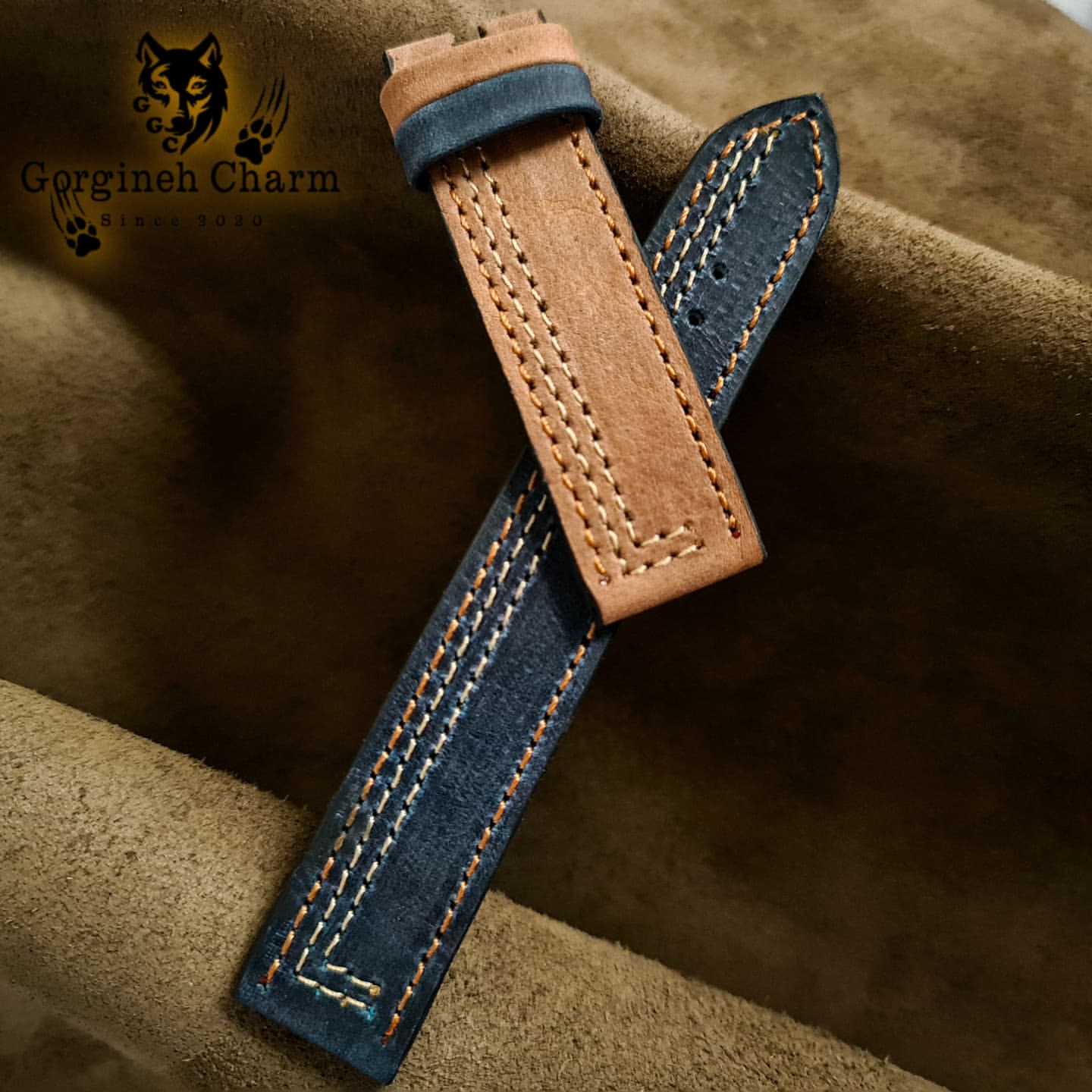 این بند ساعت از چهار لایه چرم طبیعی هورس گاوی به رنگ ترکیبی سرمه ای و خاکی ساخته شده که در هاردباکس اختصاصی برند گرگینه چرم (اسلاید آخر) تقدیم می گردد و در آستر این کار از چرم ضدحساسیت استفاده شده است. این کار دارای پرداخت لبه حرفه ای می باشد و بدون قفل ارائه می گردد. برای اینکه بند ساعت کاملا مطابق با ساعت شما طراحی شود لطفا سایز قسمت پین متصل به بدنه و قفل را با توجه به "راهنمای اندازه گیری بند ساعت" در بخش توضیحات وارد نمایید. تمامی محصولات مجموعه گرگینه چرم قابلیت شخصی سازی دارند و شما می توانید از طریق "تماس با ما" تمامی جزئیات محصول اعم از رنگ چرم، سایز، مدل، دوخت روی کار و ... را تغییر دهید. همچنین محصولات ما دارای ضمانت سلامت و کیفیت می باشند و درصورت داشتن کوچکترین ایرادی مرجوعی شما "بالبخند" پس گرفته میشود.