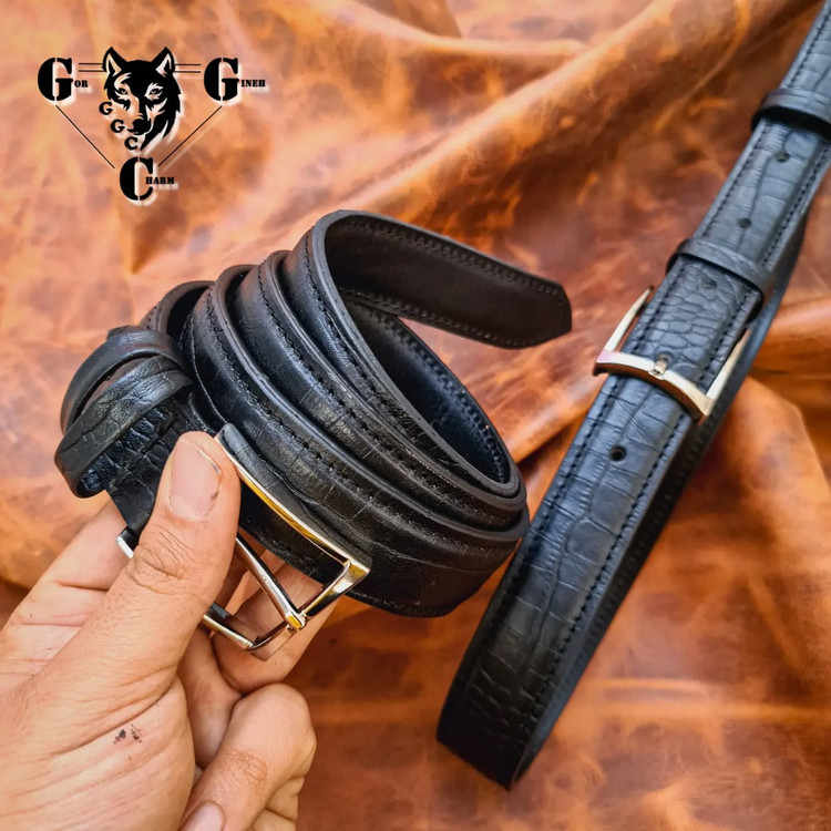 این کمربند از سه لایه چرم گاوی درجه یک ساخته شده و رویه کار از چرم کروکودیلی مشکی تشکیل شده است که در هاردباکس اختصاصی برند گرگینه چرم (اسلاید آخر) تقدیم می گردد. کمربند تک رو و چرخدوز می باشد و دارای پرداخت لبه ی حرفه ای است. عرض کمربند 3.5 می باشد که هم برای تیپ رسمی و هم اسپرت کاربرد دارد. لطفا سایز دور کمر یا تیپ بدنی خود را در قسمت توضیحات مشتری وارد نمایید. تمامی محصولات مجموعه دارای ضمانت است، و درصورت داشتن کوچکترین ایراد مرجوعی شما با "لبخند" پس گرفته می شود. درضمن برای شخصی سازی سفارشات خود نظیر انتخاب چرم یا تغییر سایز، مدل، رنگ و نوع دوخت می توانید از قسمت "تماس با ما یا شبکه های اجتماعی مجموعه" با ما در ارتباط باشید.