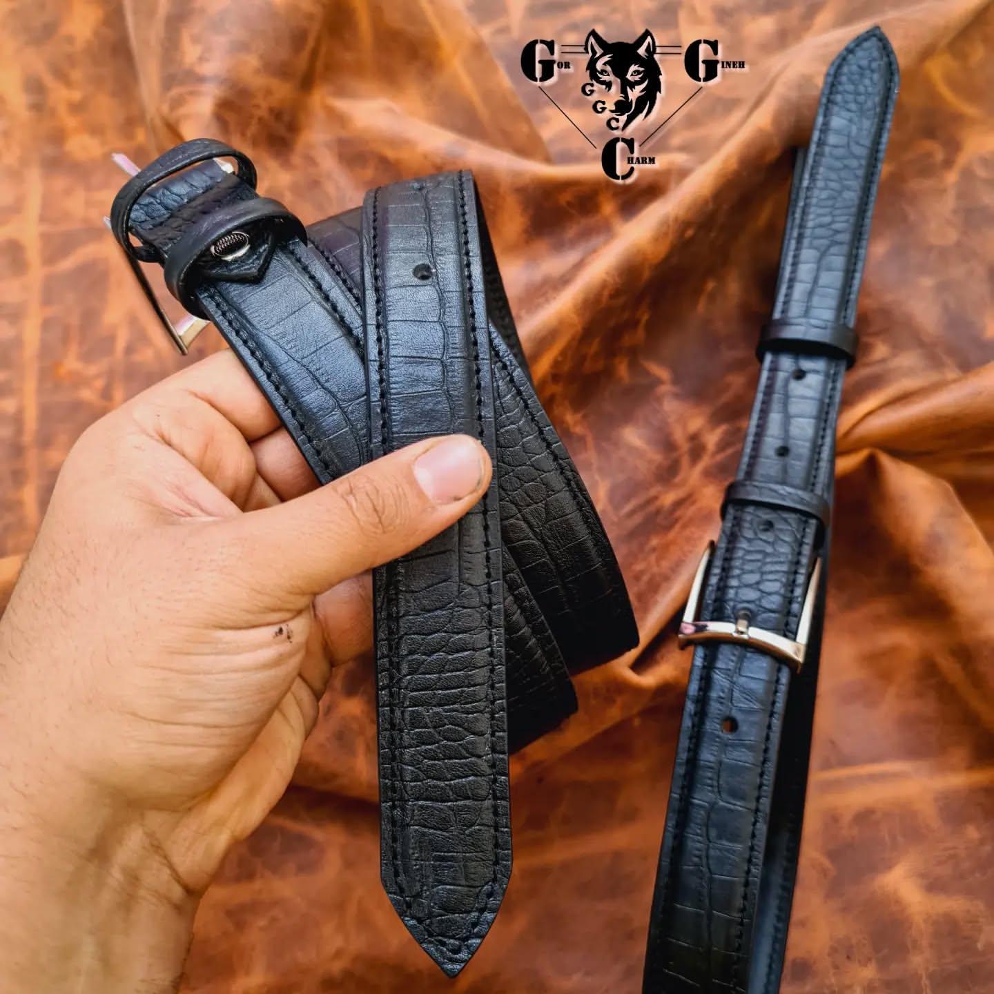 این کمربند از سه لایه چرم گاوی درجه یک ساخته شده و رویه کار از چرم کروکودیلی مشکی تشکیل شده است که در هاردباکس اختصاصی برند گرگینه چرم (اسلاید آخر) تقدیم می گردد. کمربند تک رو و چرخدوز می باشد و دارای پرداخت لبه ی حرفه ای است. عرض کمربند 3.5 می باشد که هم برای تیپ رسمی و هم اسپرت کاربرد دارد. لطفا سایز دور کمر یا تیپ بدنی خود را در قسمت توضیحات مشتری وارد نمایید. تمامی محصولات مجموعه دارای ضمانت است، و درصورت داشتن کوچکترین ایراد مرجوعی شما با "لبخند" پس گرفته می شود. درضمن برای شخصی سازی سفارشات خود نظیر انتخاب چرم یا تغییر سایز، مدل، رنگ و نوع دوخت می توانید از قسمت "تماس با ما یا شبکه های اجتماعی مجموعه" با ما در ارتباط باشید.