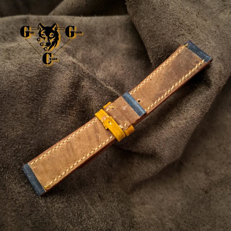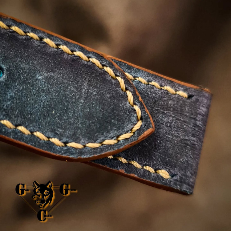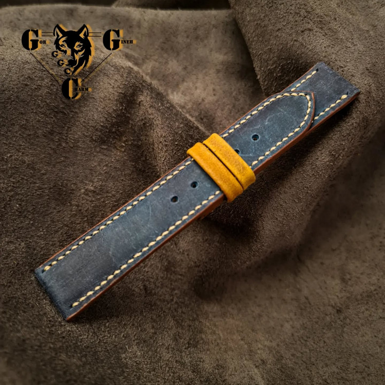 این بند ساعت از چهار لایه چرم طبیعی هورس گاوی به رنگ ترکیبی سرمه ای و خردلی ساخته شده که در هاردباکس اختصاصی برند گرگینه چرم (اسلاید آخر) تقدیم می گردد و در آستر این کار از چرم ضدحساسیت استفاده شده است. این کار دارای پرداخت لبه حرفه ای می باشد و بدون قفل ارائه می گردد. برای اینکه بند ساعت کاملا مطابق با ساعت شما طراحی شود لطفا سایز قسمت پین متصل به بدنه و قفل را با توجه به "راهنمای اندازه گیری بند ساعت" در بخش توضیحات وارد نمایید. تمامی محصولات مجموعه گرگینه چرم قابلیت شخصی سازی دارند و شما می توانید از طریق "تماس با ما" تمامی جزئیات محصول اعم از رنگ چرم، سایز، مدل، دوخت روی کار و ... را تغییر دهید. همچنین محصولات ما دارای ضمانت سلامت و کیفیت می باشند و درصورت داشتن کوچکترین ایرادی مرجوعی شما "بالبخند" پس گرفته میشود.