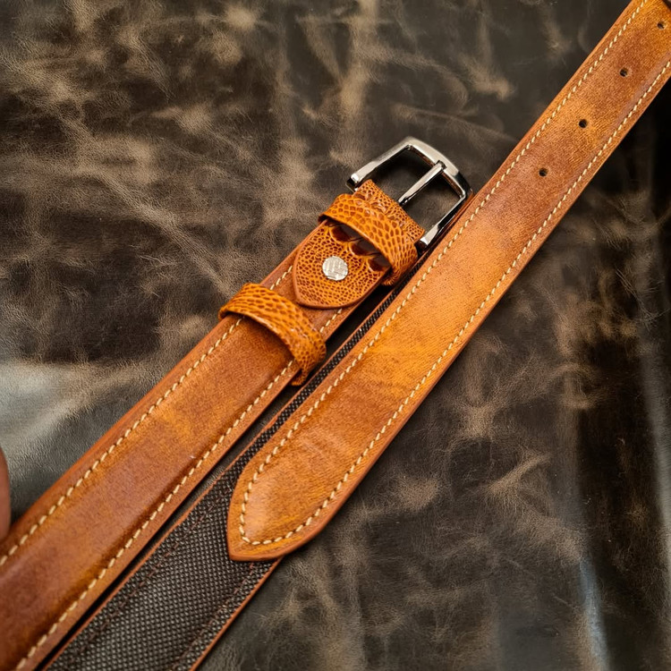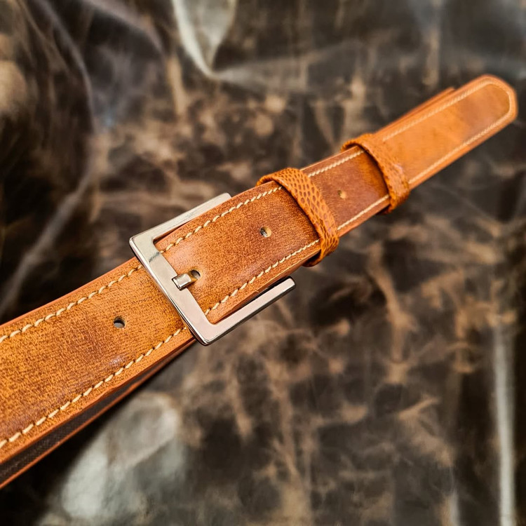 این کمربند از سه لایه چرم گاوی درجه یک ساخته شده و رویه کار از چرم پتینه عسلی و چرم لوکس ساق شترمرغ در قسمت اتصال سگک تشکیل شده است که در هاردباکس اختصاصی برند گرگینه چرم (اسلاید آخر) تقدیم می گردد. کمربند تک رو و چرخدوز می باشد و دارای پرداخت لبه ی حرفه ای است. عرض کمربند 3.5 می باشد که هم برای تیپ رسمی و هم اسپرت کاربرد دارد. لطفا سایز دور کمر یا تیپ بدنی خود را در قسمت توضیحات مشتری وارد نمایید. تمامی محصولات مجموعه دارای ضمانت است، و درصورت داشتن کوچکترین ایراد مرجوعی شما با "لبخند" پس گرفته می شود. درضمن برای شخصی سازی سفارشات خود نظیر انتخاب چرم یا تغییر سایز، مدل، رنگ و نوع دوخت می توانید از قسمت "تماس با ما یا شبکه های اجتماعی مجموعه" با ما در ارتباط باشید.