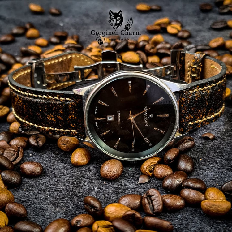 این بند ساعت از چهار لایه چرم طبیعی ساخته شده که رویه کار چرم بوفالو کهکشانی می باشد و در هاردباکس اختصاصی برند گرگینه چرم (اسلاید آخر) تقدیم می گردد و در آستر این کار از چرم ضدحساسیت استفاده شده است. این کار دارای پرداخت لبه حرفه ای می باشد و بدون قفل ارائه می گردد. برای اینکه بند ساعت کاملا مطابق با ساعت شما طراحی شود لطفا سایز قسمت پین متصل به بدنه و قفل را با توجه به "راهنمای اندازه گیری بند ساعت" در بخش توضیحات وارد نمایید. تمامی محصولات مجموعه گرگینه چرم قابلیت شخصی سازی دارند و شما می توانید از طریق "تماس با ما" تمامی جزئیات محصول اعم از رنگ چرم، سایز، مدل، دوخت روی کار و ... را تغییر دهید. همچنین محصولات ما دارای ضمانت سلامت و کیفیت می باشند و درصورت داشتن کوچکترین ایرادی مرجوعی شما "بالبخند" پس گرفته میشود.